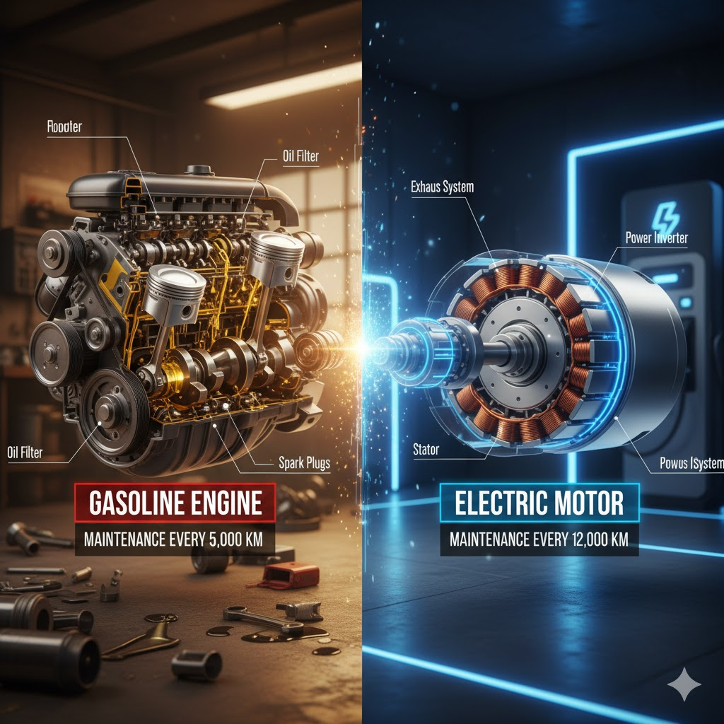 Câu trả lời nằm ở sự khác biệt về cấu tạo và nguyên lý hoạt động. Xe điện đơn giản hơn xe xăng rất nhiều, loại bỏ hàng loạt các bộ phận cơ khí phức tạp vốn là nguồn gốc của hầu hết các công việc bảo dưỡng định kỳ.