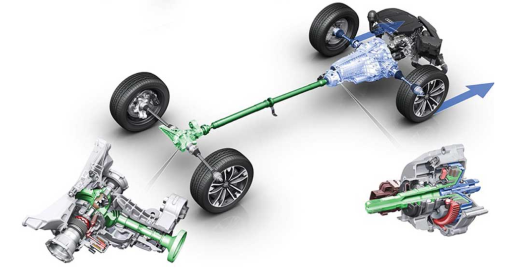 • Truyền lực tới bánh xe: cầu / vi sai, trục láp (half-shafts) nếu cần.