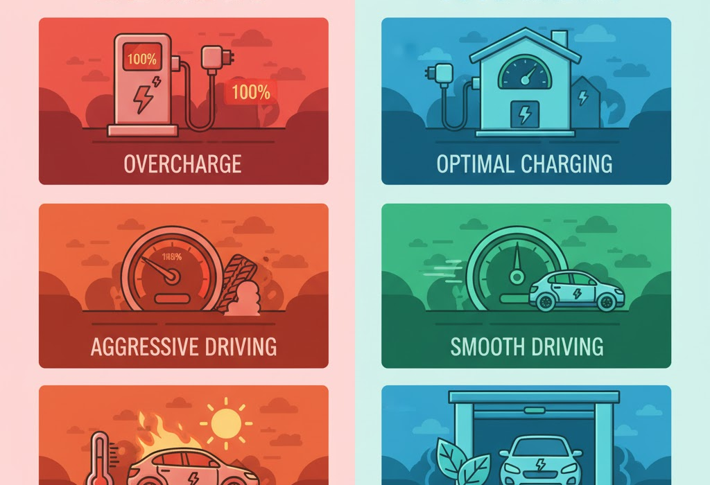 Khi bạn tăng tốc mạnh, mô-tơ điện yêu cầu dòng xả lớn từ pin. Ngược lại, phanh gấp khiến hệ thống tái sinh năng lượng hoạt động quá tải. Cả hai điều này đều khiến pin làm việc cực đoan, giảm tuổi thọ.