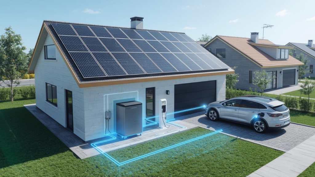 Khi pin mái nhà sản xuất dư điện, bạn có thể sạc xe thay vì bán ngược lên lưới.