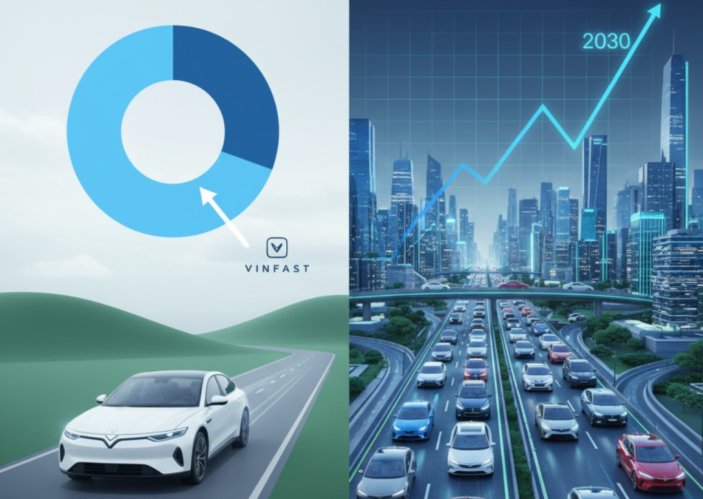 - Kịch bản cơ sở: EV chiếm 20–30% doanh số xe mới; thị trường giá trị gấp đôi so với 2025.